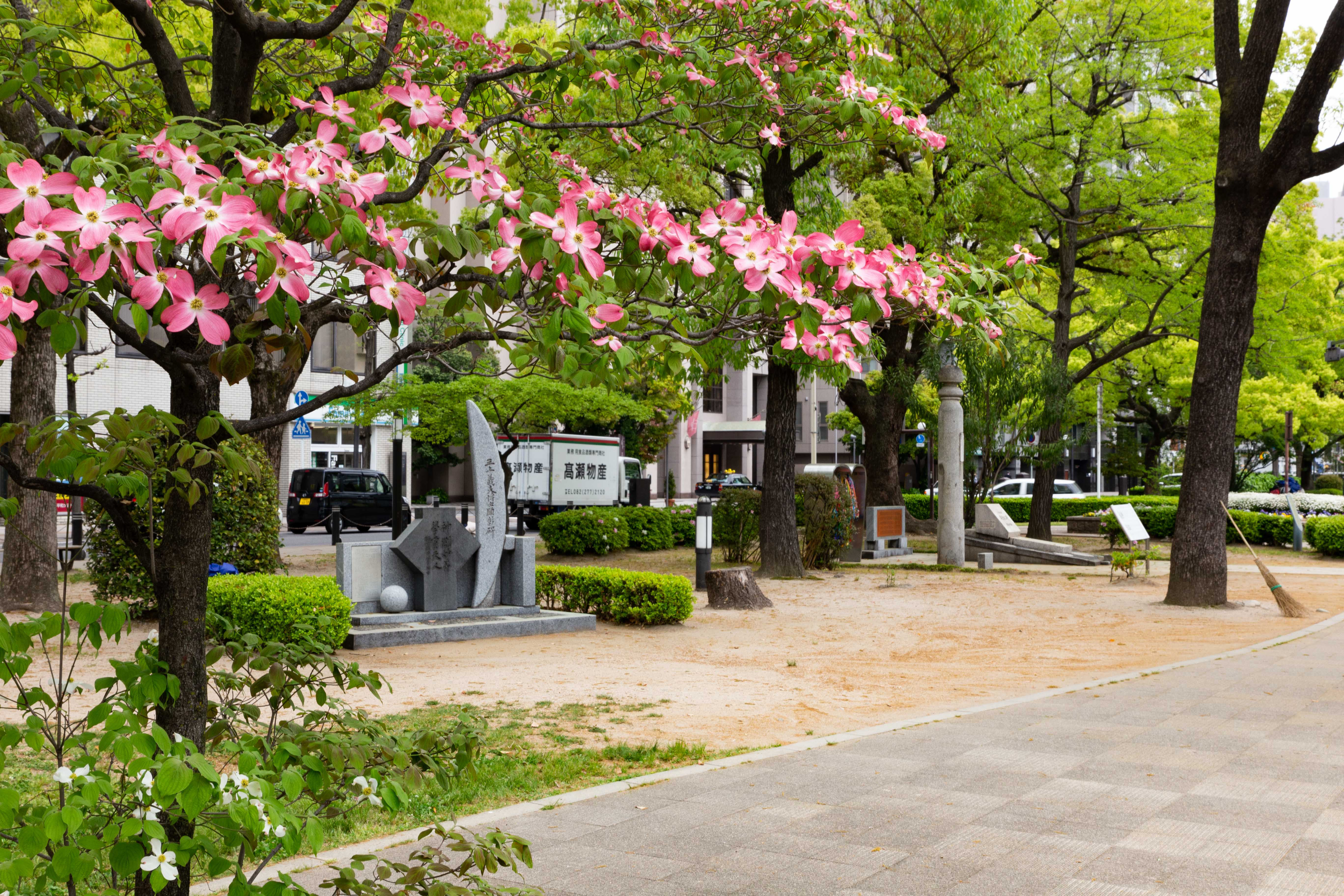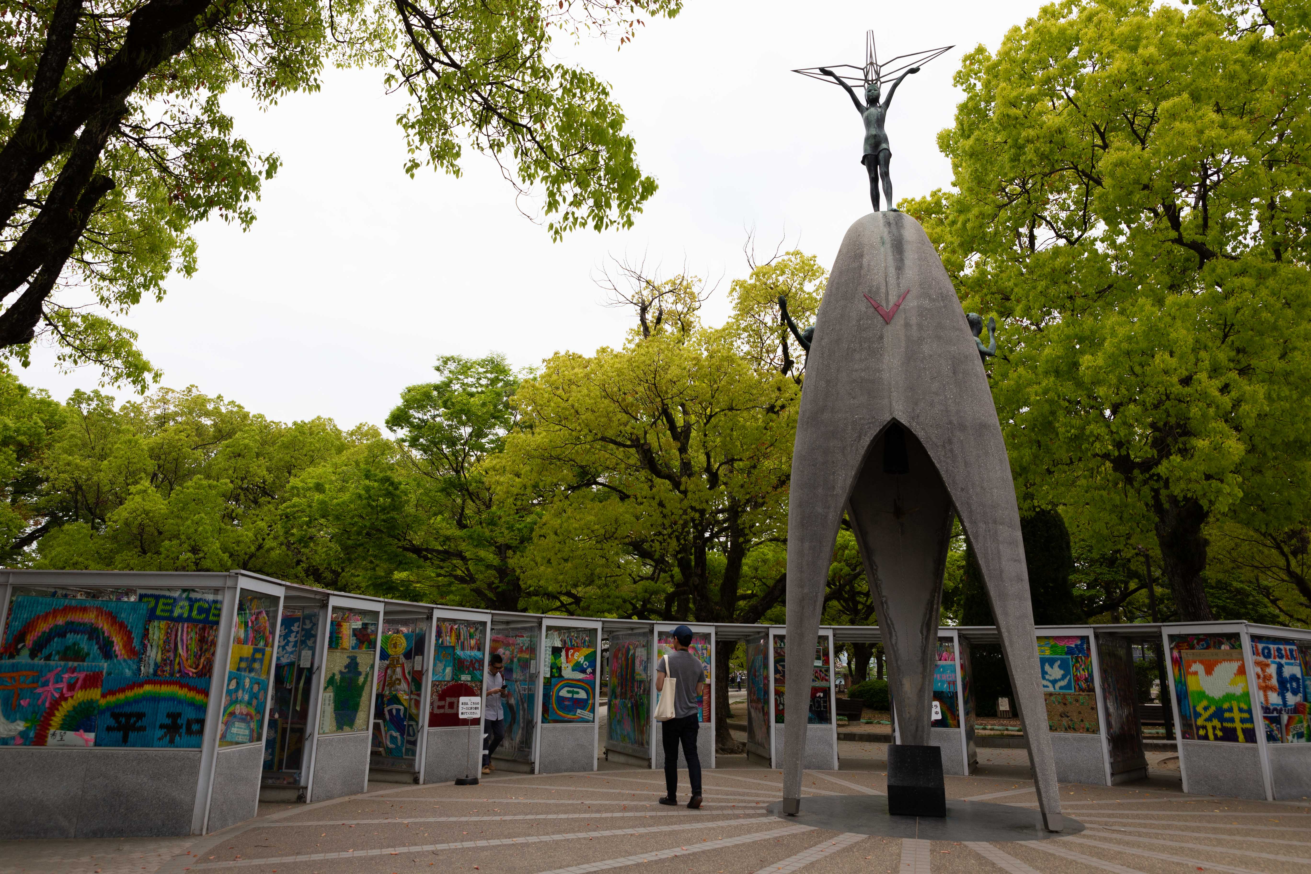Hiroshima Peace Memorial Park upamiętnia tragiczne wydarzenia II wojny światowej. Miejsce to jednak nie ma być przepełnione smutkiem, a nieść nadzieję na lepsze jutro. Park został zaprojektowany tak, by odwiedzający mogli zobaczyć najważniejsze elementy bez przeszkód. Oś kompozycyjna prowadzi od A-Bomb Dome – kopuły zniszczonej podczas wybuchu, obok pomników wspominających ofiary, aż do Muzeum Pokoju, którego podłużną, rytmiczną bryłę zaprojektował znany japoński architekt Kenzō Tange.