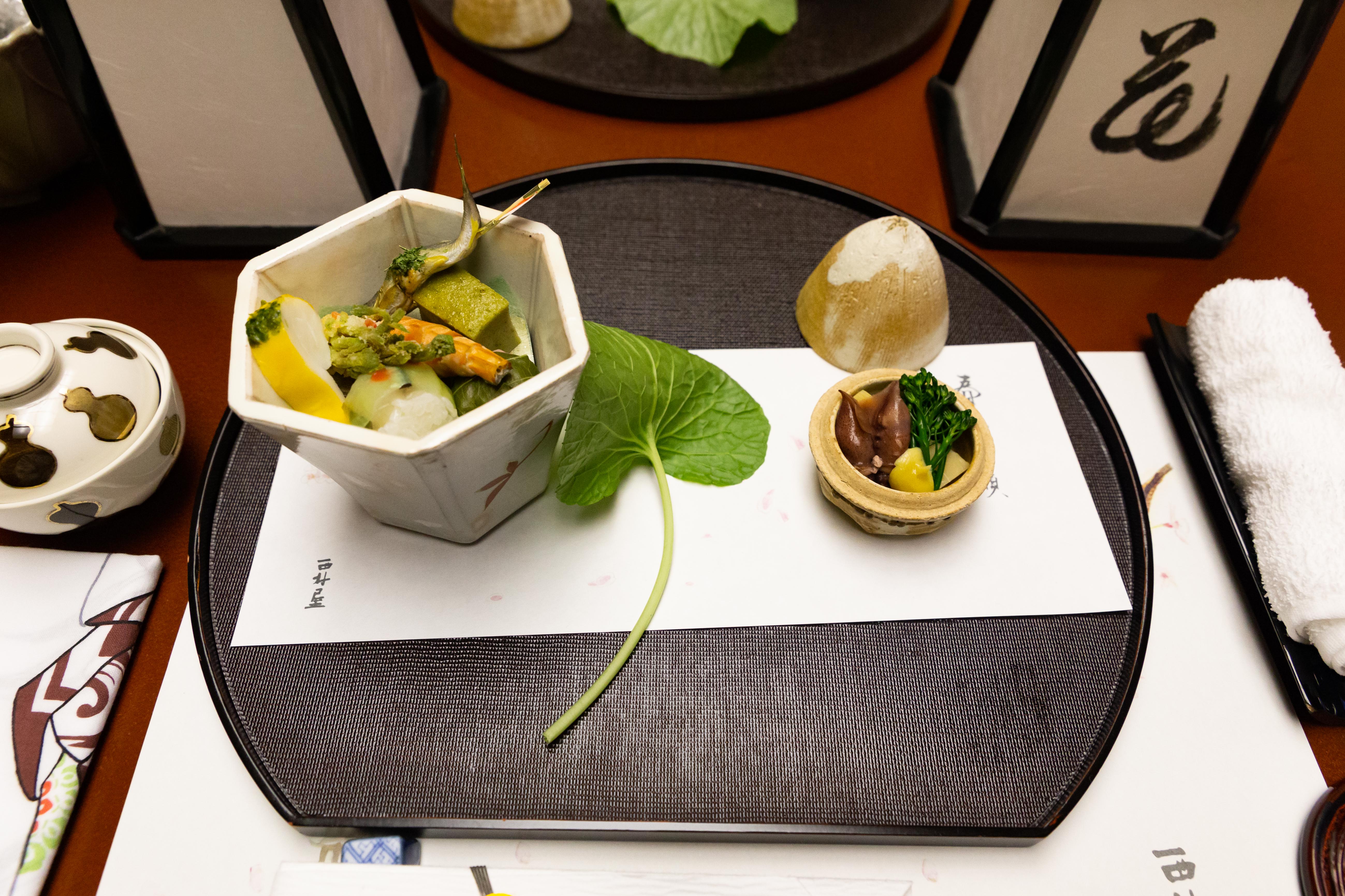 Kolacja serwowana w naszym pokoju była w stylu kaiseki. Jest to tradycyjny japoński wielodaniowy posiłek, którego poszczególne dania, ich składniki oraz ich sekwencja są ściśle określone. Termin kaiseki odnosi się także do sposobu przyrządzenia i technik przygotowywania poszczególnych potraw składających się na pełen posiłek. Podczas kolacji dostaliśmy m.in. czerwony ryż serwowany tradycyjnie podczas ważnych uroczystości. Dodatkowo w prezencie z okazji naszej rocznicy ślubu dostaliśmy piękne pałeczki 🙂