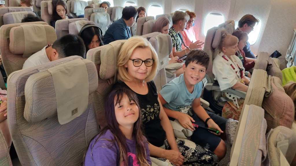 Najpierw lot z Barcelony do Warszawy, nocleg w hotelu na lotnisku, żeby było szybko i wygodnie. Następnego dnia lot Warszawa – Dubaj. Odprawa poszła gładko, ale przejście przez security check nie bardzo – ponad 2h w kolejce, cały zapas czasu przestaliśmy w tłumie. Lotnisko nie przewidziało dużej liczby pasażerów wylatujących na wakacje :0 Skończyło się ok 1h opóźnieniem wylotu, bo czekaliśmy na pasażerów, którym nie udało się przejść przez security na czas.