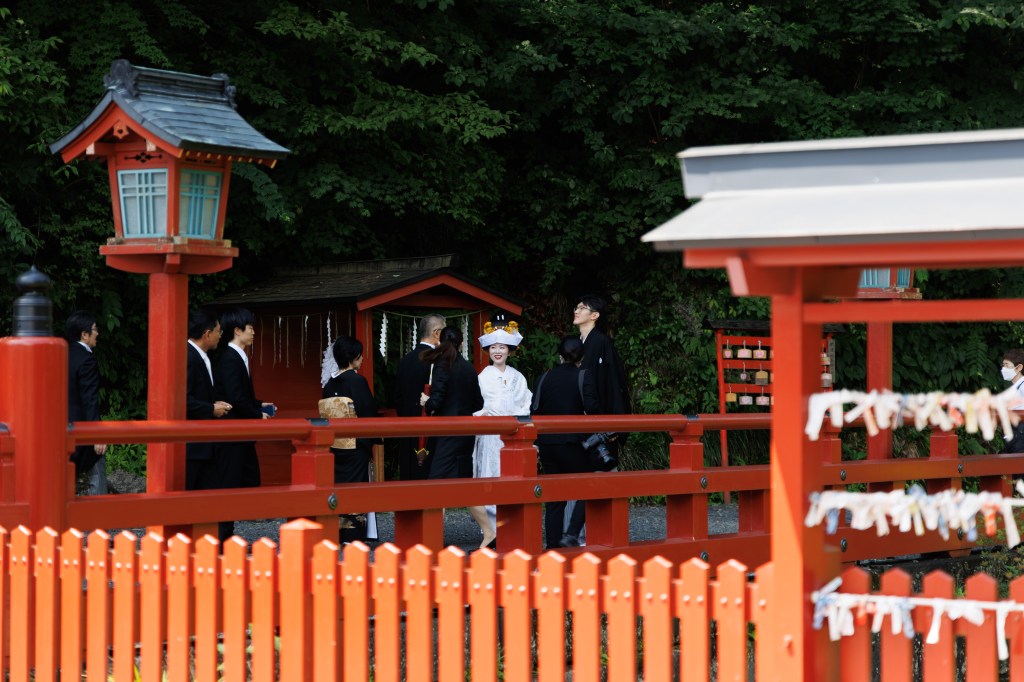 Zaczynamy od czerwonego mostu Shinkyo. Legenda głosi, że buddyjski mnich chciał się przedostać z jednego brzegu rzeki na drugi, by założyć świątynię, w miejscu które zobaczył w swojej wizji. Ponieważ nie miał jak przejść na pomoc przybyły mu dwa duże węże, które stworzyły ze swoich ciał kładkę. Następnie w tym miejscu zbudowano drewniany święty most. Dodatkowo mieliśmy niepowtarzalną okazję oglądać część ceremonii zaślubin młodej pary. Na moście w asyście rodziny i gości modlili się o wspólne szczęśliwe życie.