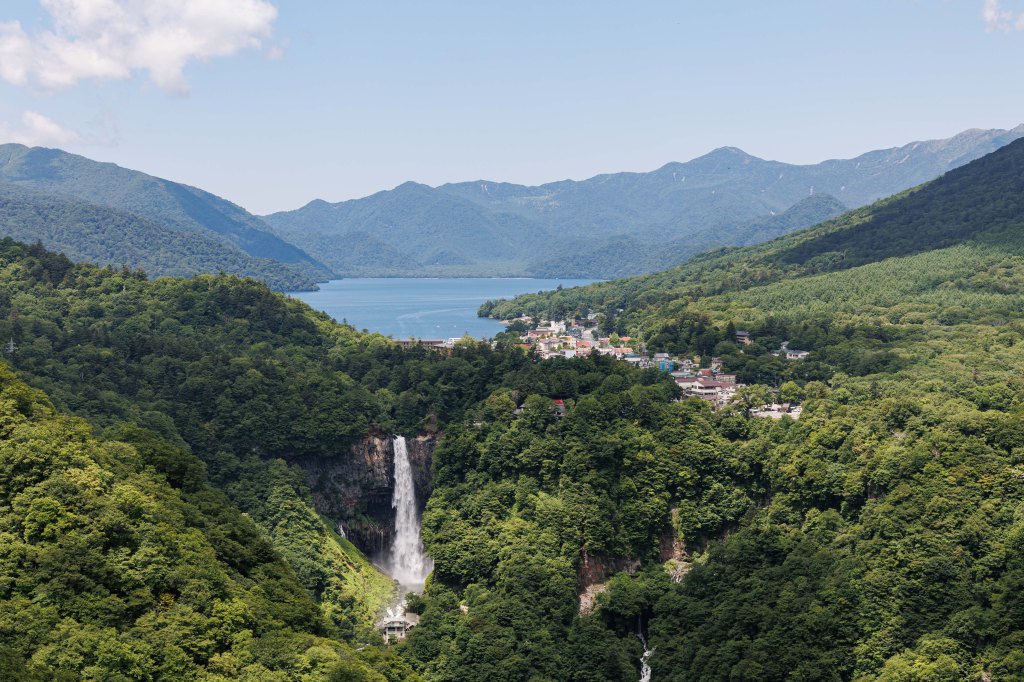 erupcji świętej góry Nantai i głębokie na 160m obecnie jest częścią parku narodowego. Zanim jednak go utworzono, zbudowano tutaj m.in. domy letniskowe należące do różnych ambasad.