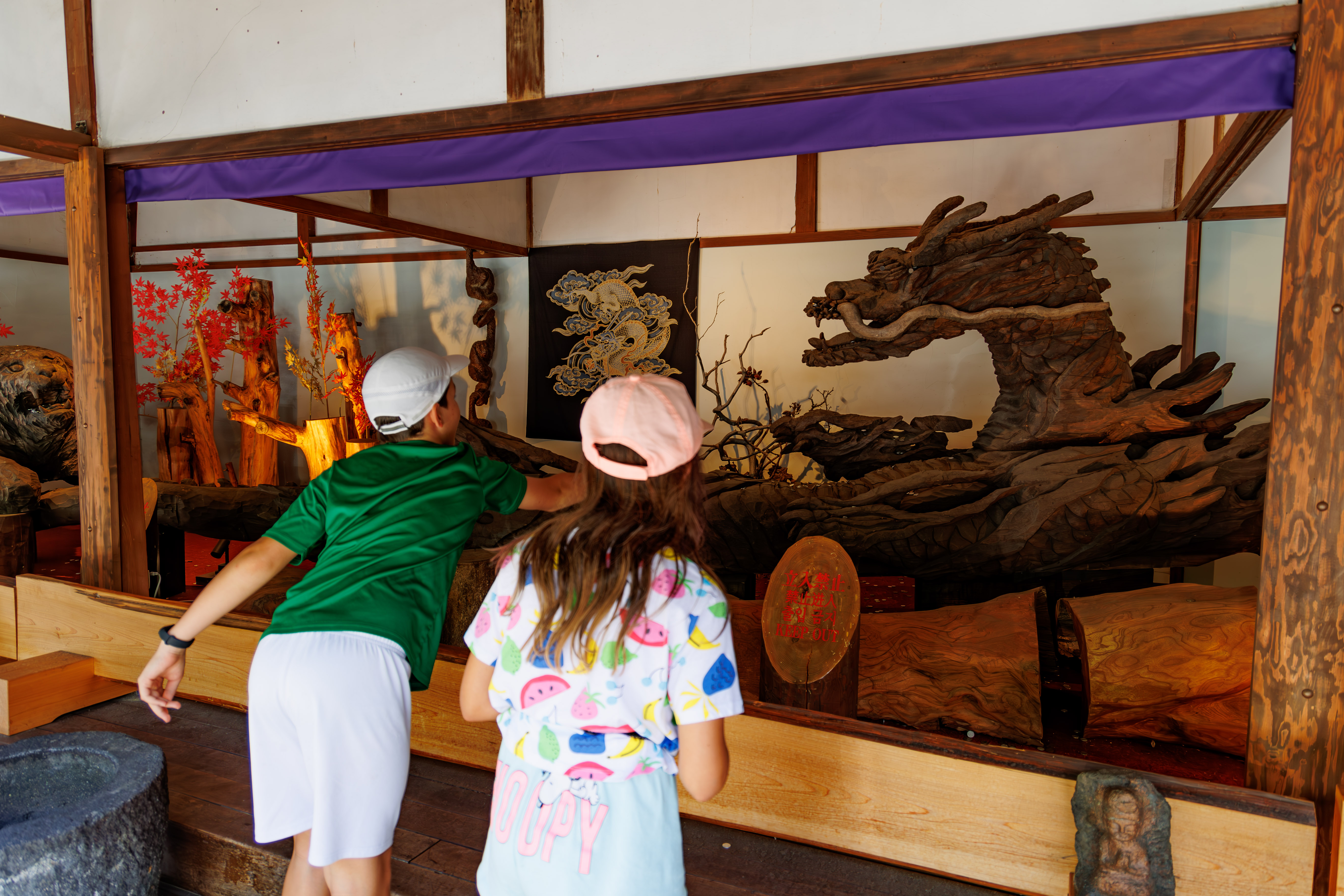 Ostatni przystanek – wąwóz Kanmangafuchi i rzeka Daiya – wzdłuż, których mieszczono szereg 70 figurek Jizo, bóstwa opiekującego się podróżnymi i dziećmi (stąd czerwona czapeczka i śliniaczek).