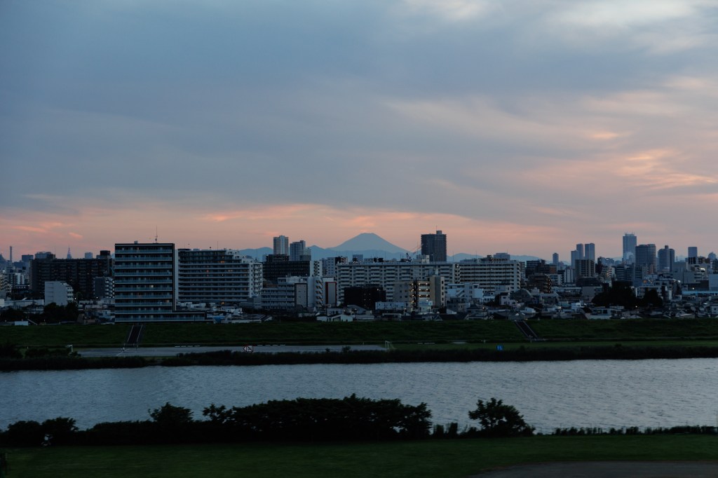 A w drodze powrotnej, by uniknąć korka wjazdowego do Tokio (niedziela po południu) część trasy przejechaliśmy lokalnymi drogami. Dzięki temu mogliśmy oglądać pola ryżowe. A na wjeździe do Tokio ukazała nam się Góra Fuji! Piękne zakończenie dnia 🙂